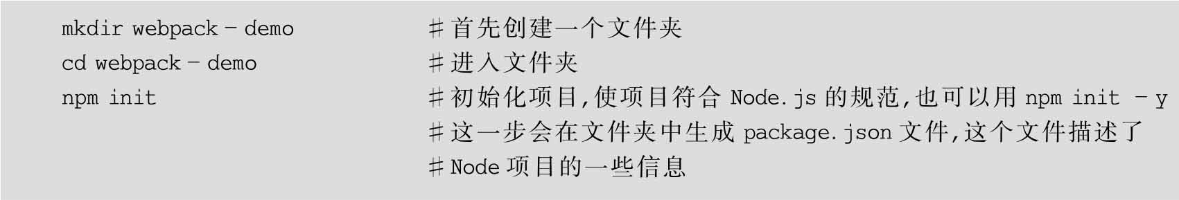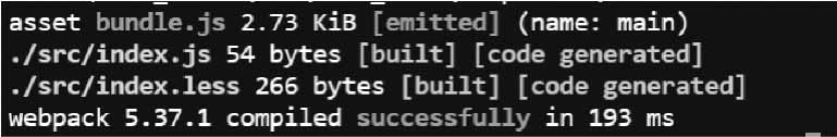 第7步:编译打包。在项目目录下直接执行webpack命令,如图3-17所示,打包的文件输出在output目录下,输出如下: