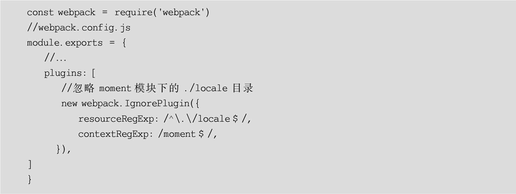 有的依赖包,除了项目所需的模块内容外,还会附带一些多余的模块,例如moment模块会将所有本地化内容和核心功能一起打包。
