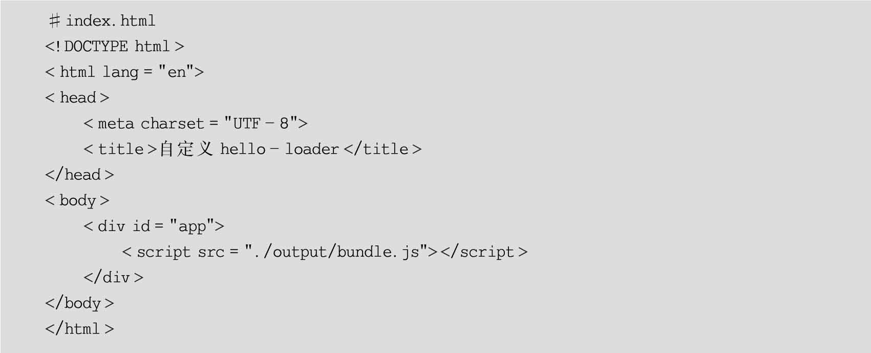 第4步:编写index.html文件。main.js文件的代码逻辑很简单,就是获取页面中的一个id为app的元素,并将.hello中的值显示在元素中,代码如下:
