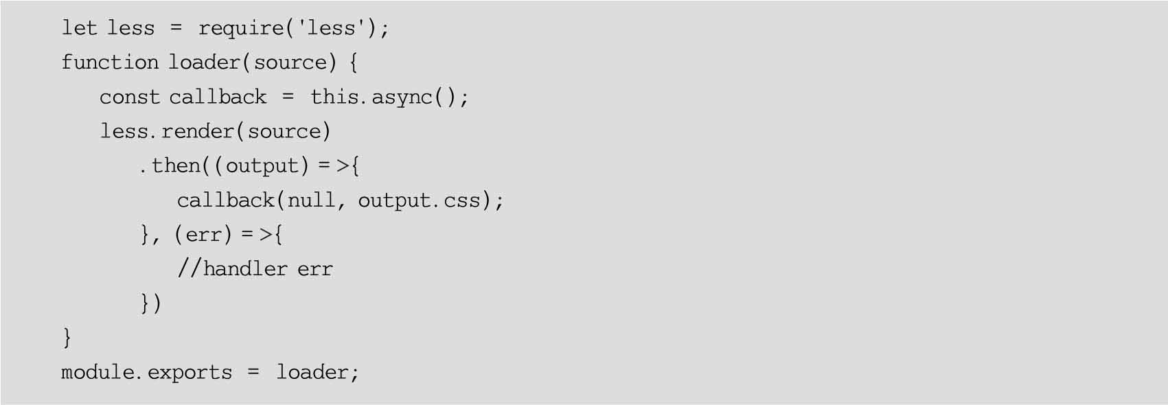 这里处理的业务很简单,就是获得原始的.less文件的内容,将.less文件通过less.render编译为.css文件并传递给下一个Loader即可。