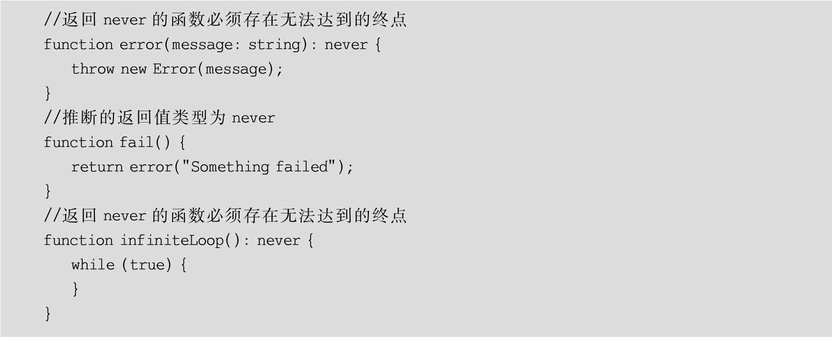 下面是一些返回never类型的函数,如代码示例4-21所示。