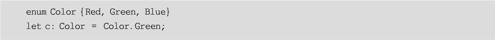 enum类型是对JavaScript标准数据类型的一个补充。像C#等其他语言一样,使用枚举类型可以为一组数值赋予友好的名字,如代码示例4-11所示。