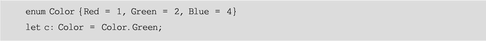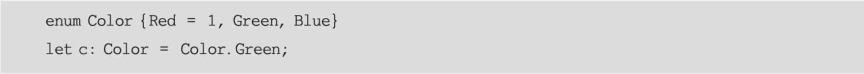 默认情况下,从0开始为元素编号。也可以手动地指定成员的数值。例如,将上面的例子改成从1开始编号,如代码示例4-12所示。