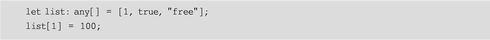 当只知道一部分数据的类型时,any类型也是有用的。例如,有一个数组,它包含了不同类型的数据,如代码示例4-17所示。
