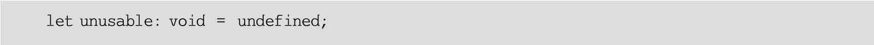 声明一个void类型的变量没有什么大用,因为只能为它赋予undefined和null,如代码示例4-19所示。