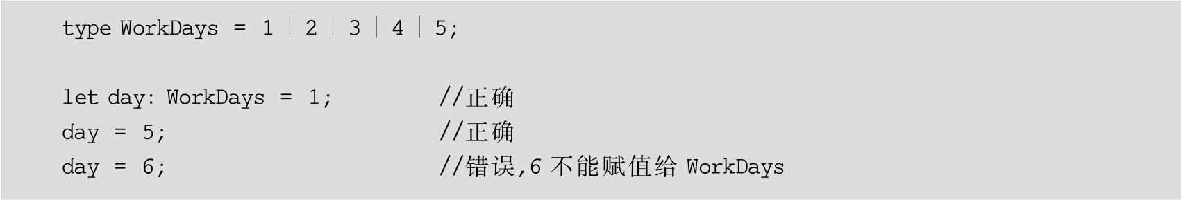 上面的type的类型就是number和boolean的联合类型,type的值是这两种类型中的一种,下面定义了一种由字面量类型组合成的一个新的联合类型,如代码示例4-28所示。