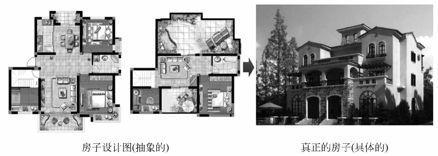 类是对业务领域对象的抽象,类是一张蓝图或一个原型,它定义了特定一类对象共有的变量/属性和方法/函数,对象是面向对象编程中基本的运行实体,类与对象的关系如图4-3所示。