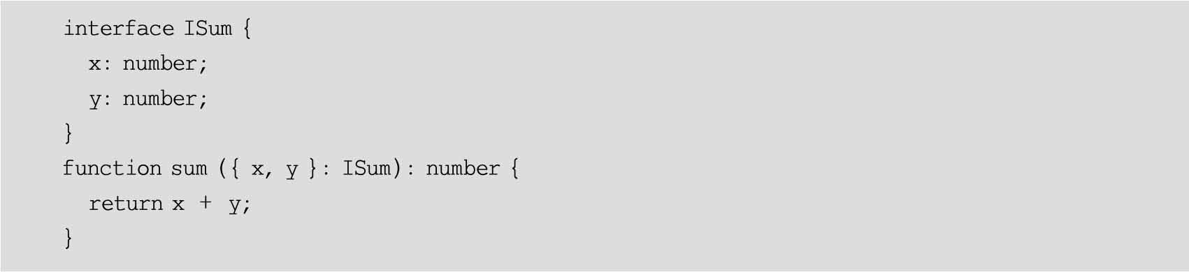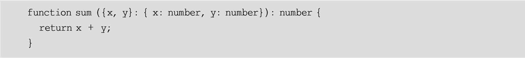 在TypeScript中定义函数形参{x,y},如代码示例4-33所示。