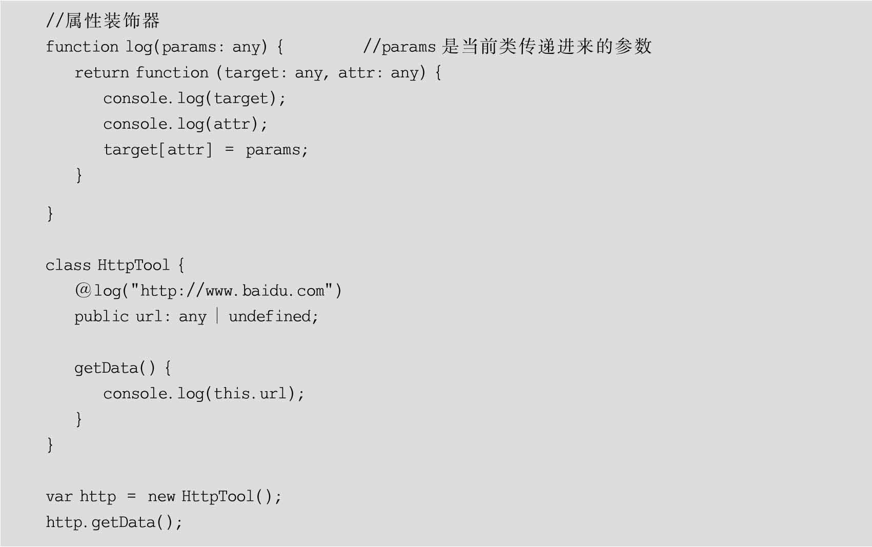 属性装饰器会被应用到属性描述上,可以用来监视、修改或者替换属性的值。