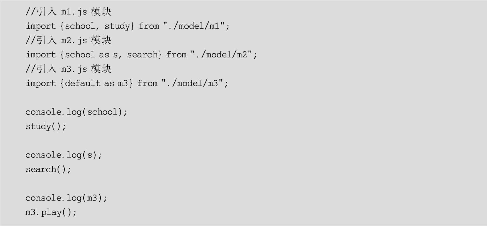在导入模块时,通过解构赋值的方式获取对象,如代码示例4-51所示。