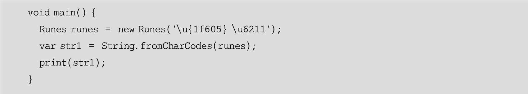 在Dart中,符号是字符串的UTF-32代码单元,如代码示例5-12所示。