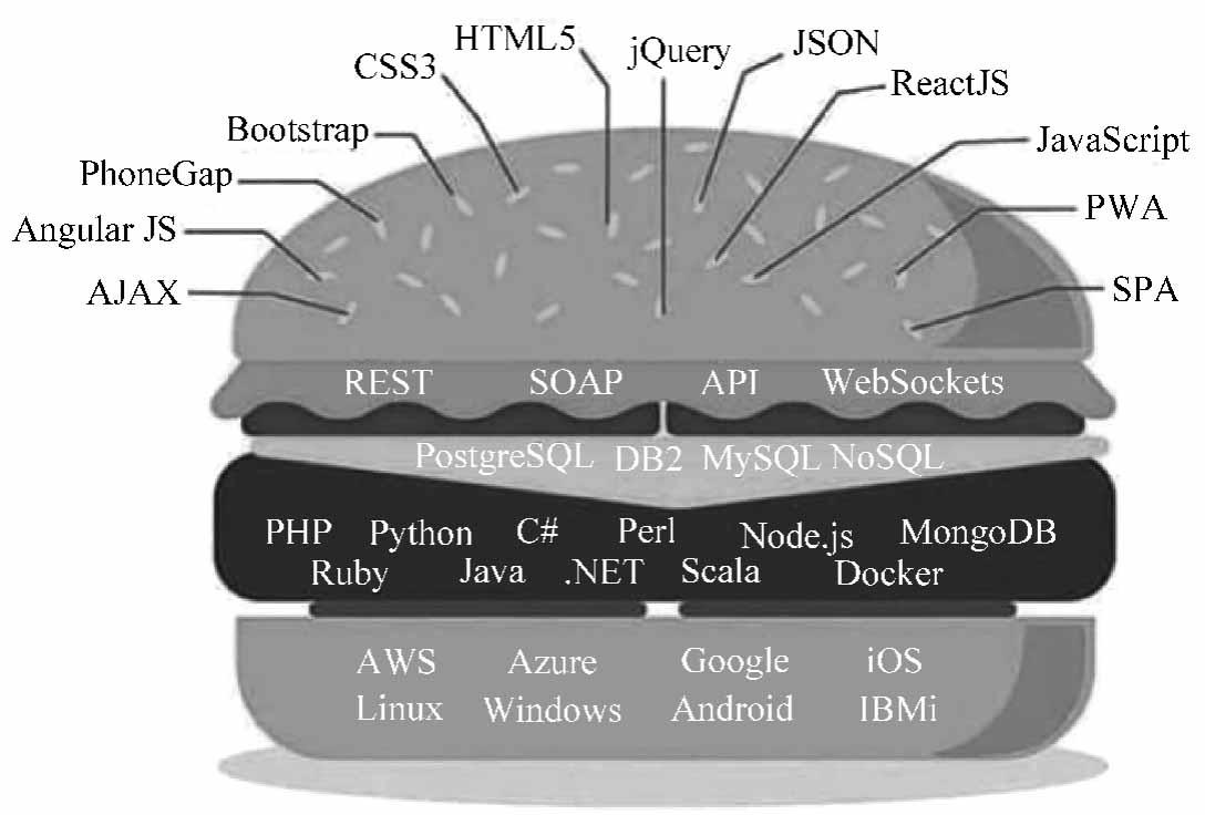 2009年,Node.js风靡全球,作为前端开发者标配的开发语言JavaScript,被引入传统的后端领域,也就是服务器端。于是一大批基于Node.js平台的框架随即出现,比较典型的就是MEAN(MongoDB+Express+AngularJS+Node.js)模式,基本成为企业信息化产品的基础架构模式。随后又出现了很多基于Node.js平台的微服务框架和区块链框架。JavaScript语言成为首个可以同时解决前端和后端应用开发的开发语言,由于开源NoSQL数据库(MongoDB)也采用JavaScript语言作为数据库查询操作语言,JavaScript甚至进入了数据库查询语言中。