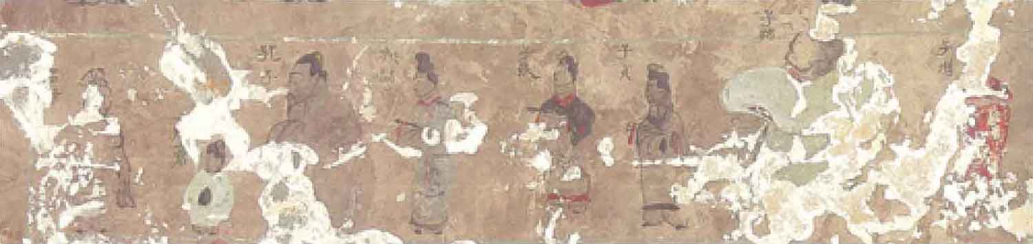 尽管如此,在东汉的大多数时间里,农夫依然在定襄郡占了上风,中原文化亦在此地生根发芽。以该墓为例,在墓室壁画中,李汉以很大的篇幅,绘下了儒家先师孔子及颜渊、子张、子贡、子路、子游等弟子像(图7),忠臣孝子贤妇烈女像亦比比皆是,可以想见,他深受儒家思想的浸润。