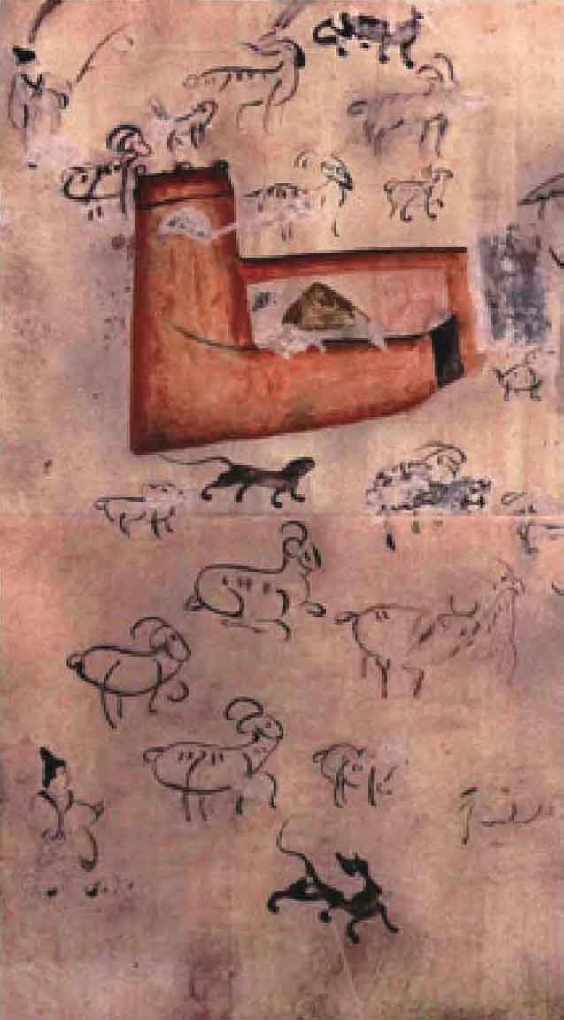 图6 羊群内蒙古和林格尔小板申东汉墓壁画(摹本,采自前引书)