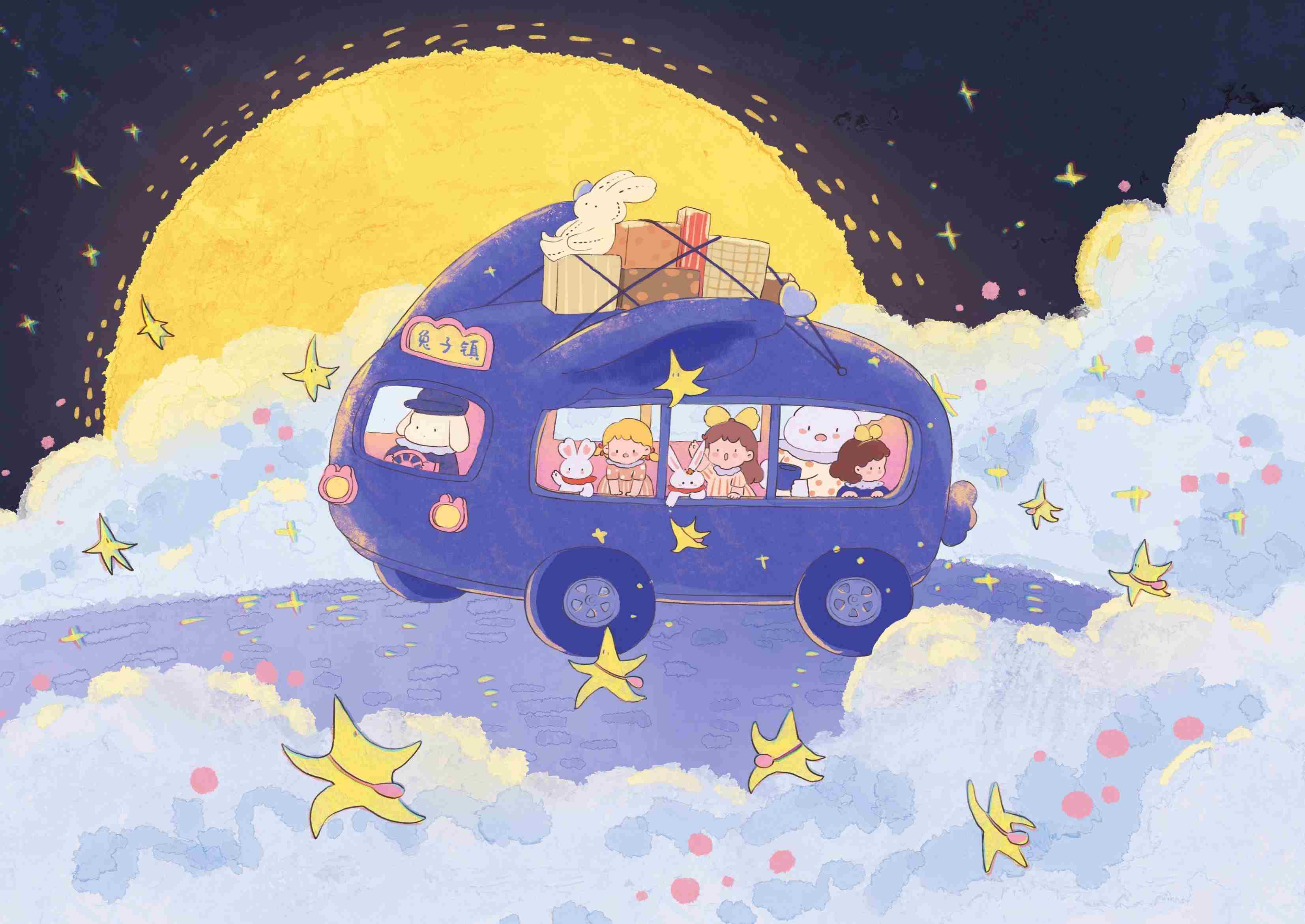 一天夜里,我坐上了一辆神秘的巴士。它带我来到了一个奇妙而又温暖的世界——兔子镇,我还认识了很多的新朋友。