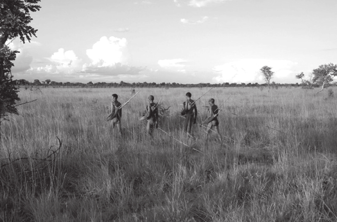 图3-6 在卡拉哈里南部的草原上觅食的布须曼人(也叫桑人或巴萨尔瓦人)