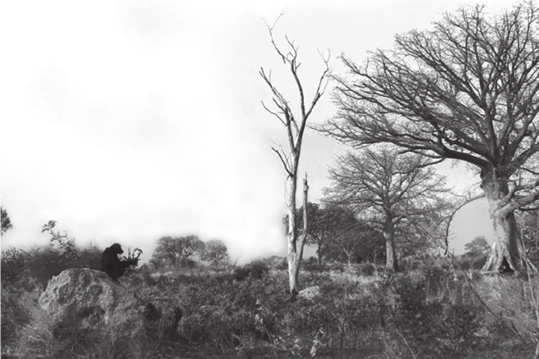 图片来源:W. C. McGrew, “Savanna chimpanzees dig for food,” Proceedings of the National Academy of Sciences , U.S.A. 104[49]: 19167-19168 [2007]. Photograph by Paco Bertolani, Leverhulme Centre for Human Evolutionary Studies.