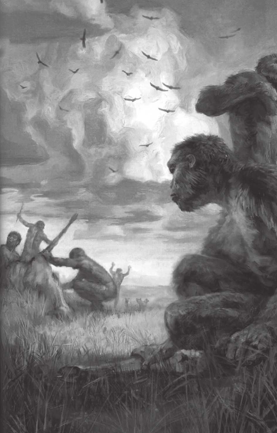 在通往真社会性的道路上,接下来的步骤是掌握火的用法。雷电引发地表火在今天的非洲草原和森林也是司空见惯的事。林间溪流环绕的林地和动辄洪水泛滥的潮湿洼地将火势削弱后,林地的下层灌丛就会变得茂密,长成易燃物。雷电和地表火蔓延会引发野火,这不仅会引燃四周的地表植被,还会向上烧到周围树林的树冠层。一些动物,尤其是动物中的老幼病残会在火海中丧生。四处游荡的前人类肯定会注意到野火是获得食物来源的重要途径。并且,它们还会发现有些动物尸体被烤熟后,肉变得容易撕咬,吃起来更方便了。