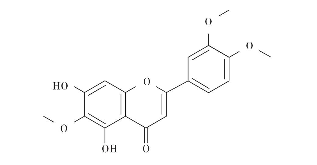 异泽兰黄素(见图2-2)是艾草的主要亲脂性黄酮,在抑制巴豆油导致的耳肿胀实验中,异泽兰黄素的IC 50 值(0.28μmol/cm 2 )与吲哚美欣IC 50 值(0.26μmol/cm 2 )相当,仅比氢化可的松的IC 50 值(0.03μmol/cm 2 )低1个数量级。多项研究证实异泽兰黄素具有多种生物活性,异泽兰黄素能降低破骨细胞的数量,降低小鼠关节炎评分以及TNF-α刺激条件下滑膜细胞所产生的IL-6和IL-1β。一方面,它也被发现可以抑制RANK配体引起的骨质疏松症,伴随着Akt,GSK3β,ERK,IκB磷酸化水平的下降以及c-Fos、NFATc1 在蛋白水平的下降,说明异泽兰黄素可能发挥着一种转录抑制作用。另一方面,通过作用在actin上使破骨细胞的细胞骨架重组,抑制多核细胞的细胞骨架重组,发挥着抗骨质疏松的作用。