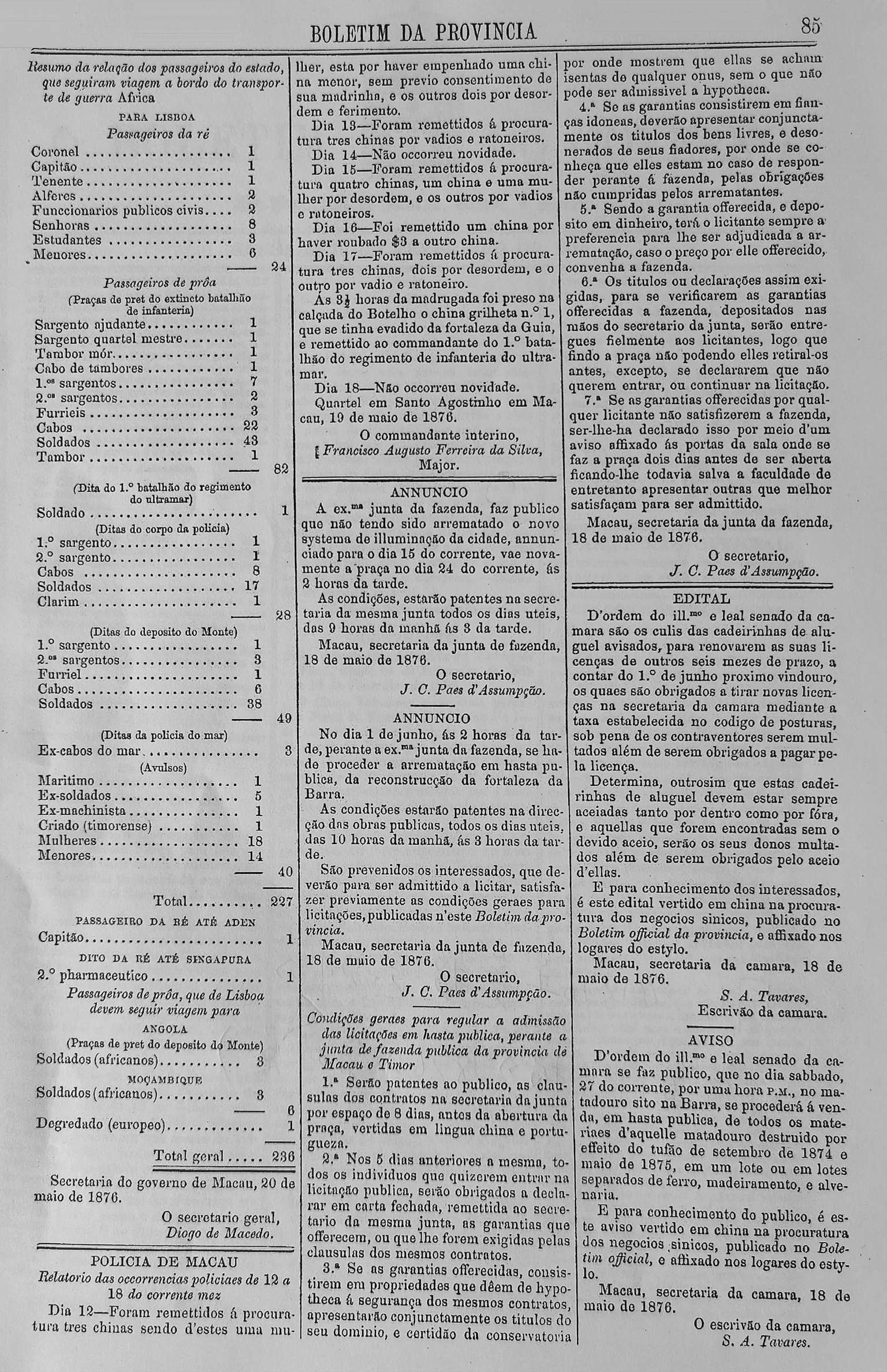 图1 1876年竞投总则(《澳门宪报》1876年,第85页)