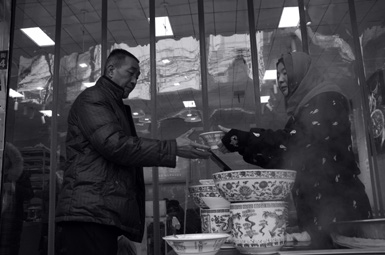 于是我蹲下来,以儿时的视角拍下这组照片,那一刻,时光折叠,眼前的一切和我记忆中的大碗、热汤,以及扎头巾的回民女子重合了。