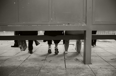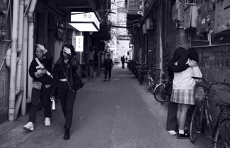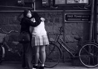 在一个小巷里,我见证了两个女孩的友谊。其中白衣女孩可能受了委屈,或是失恋了,伏在另一个女孩的肩上哭泣;深色衣服的女孩轻抚着她的头发,轻声安慰,看见我在拍照,深色衣服的女孩立刻警觉起来,承担起保护者的角色,不希望我再打扰她们。