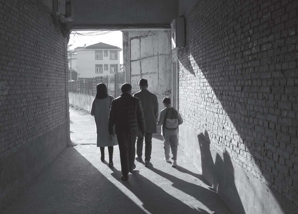 奇妙的是,同样的场景,当一家人欢声笑语地走过,像是要迈进未来新纪元,而当一位老人孤独地走过时,却像是跟随他走入历史旧时光。