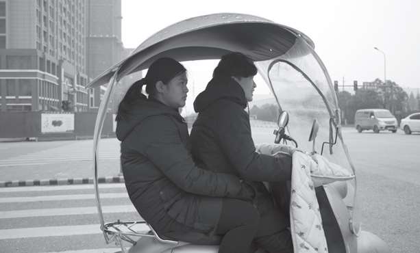 这张照片就是在如此心境下捕捉到的。我在路边等红绿灯,一对夫妻驾驶着极具长沙地方特色的带篷摩托车停在我面前,我们处在同一条线上,我看着他们,他们却无心看我。