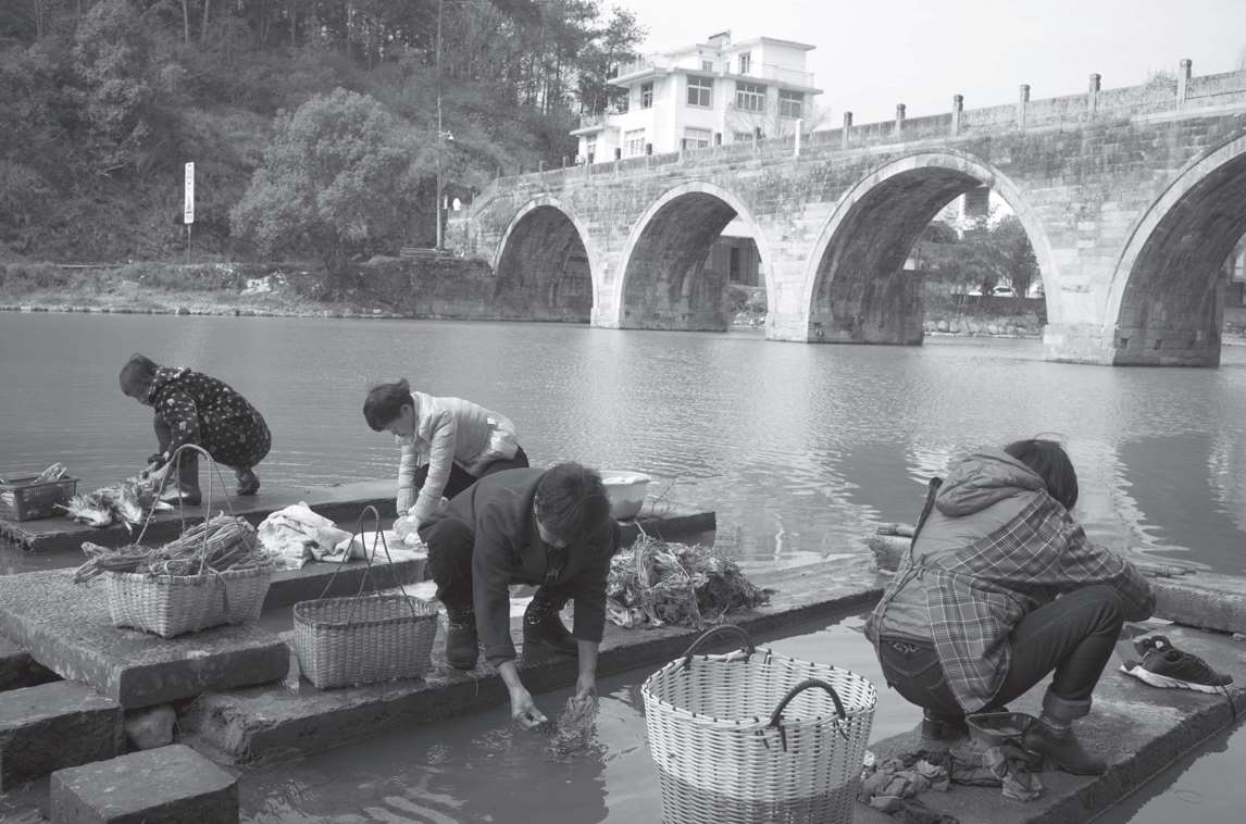 小镇旁边有条小河,河上有一座明代建成的桥,至今安然无恙。几百年的时光里,它静静地感受着小镇的人间烟火,看着妇人们来到自己脚下洗衣洗菜,听着孩童们嬉闹着从自己身上跑过,时间仿佛停滞了,在我这个外来人打扰时,倏忽几百年已过。