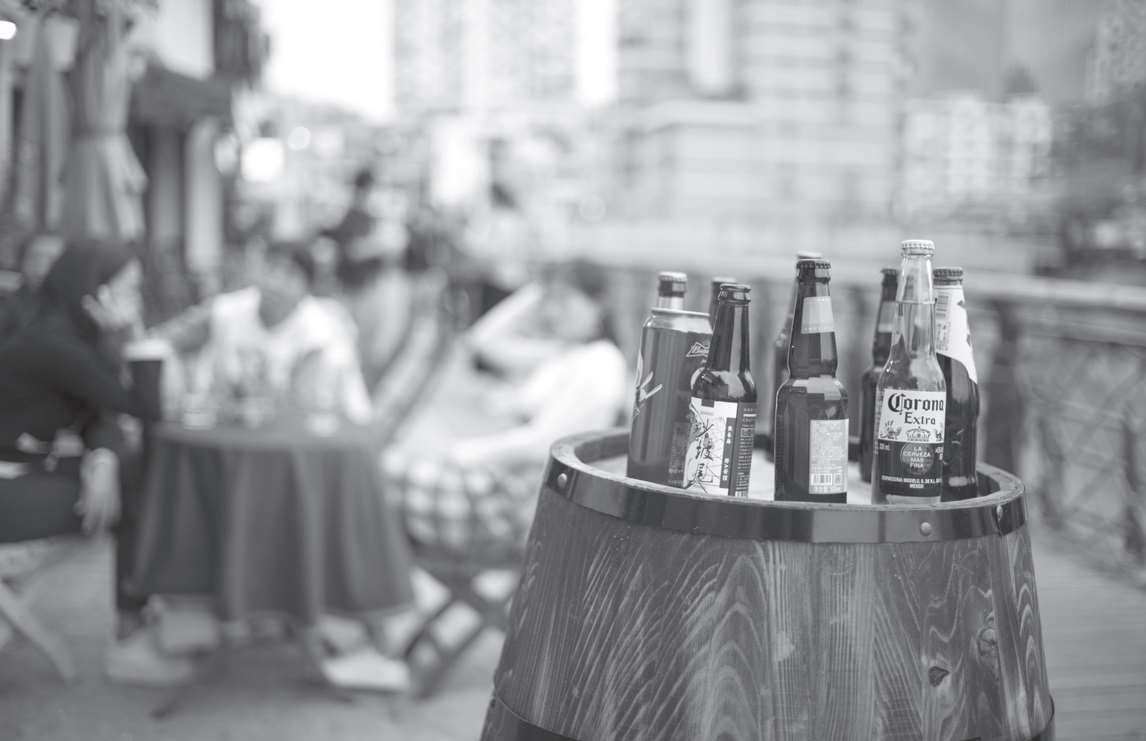走在酒吧街上,实在让人把持不住。作为一名西安人,我是爱喝酒的。白酒浓烈,容易影响情绪;葡萄酒则会勾起私密的情绪,气氛暧昧,适合独饮或二人对饮;啤酒就不同了,啤酒总能和阳光、沙滩联系在一起,瓶盖一开,泡沫涌出,全身心都是放松和惬意的。
