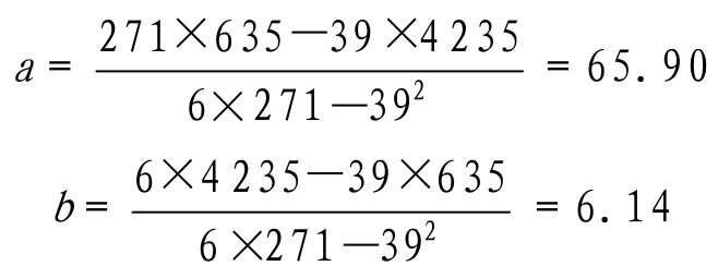 (3)将加工计算的表2.4资料代入式(2-1)、式(2-2),得: