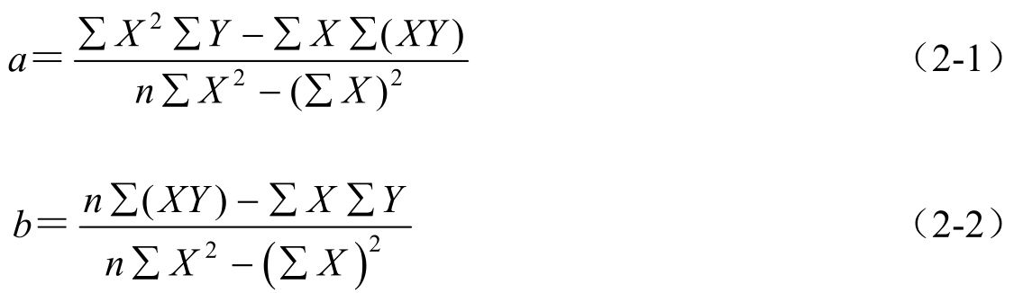 回归直线法分解混合成本中的固定成本(a)和单位变动成本(b)的计算公式如下。