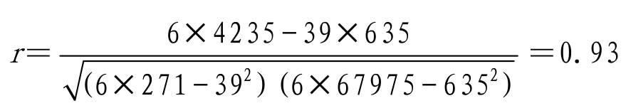 相关系数(r)的取值范围在0与±1之间。当r=0时,说明两个变量(X)和(Y)之间不存在相关关系;当r=1时,说明两个变量(X)和(Y)之间存在完全正相关关系;当r=-1时,说明两个变量(X)和(Y)之间存在完全负相关关系;当0<∣r∣<1时,∣r∣的数值反映两个变量(X)和(Y)之间相关程度,数量越大,相关程度越大;数量越小,相关程度越小。一般来说,∣r∣>0.8时,两个变量(X)和(Y)之间的关系,可以采用回归直线法分析。