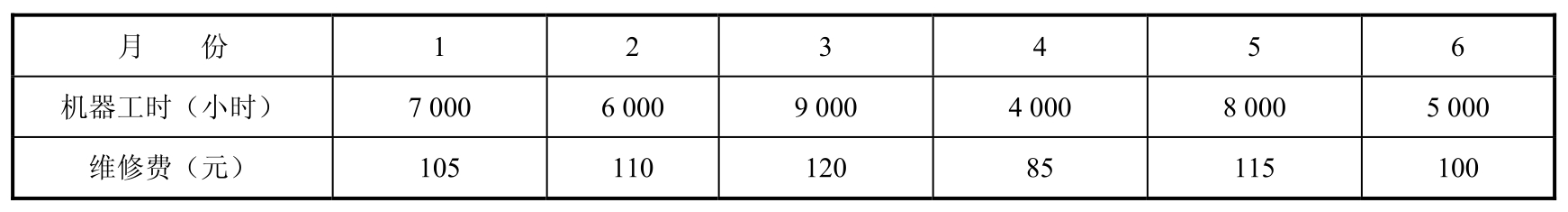 表2.3 皖巢公司2013年1~6月混合成本维修费与业务量机器工时资料