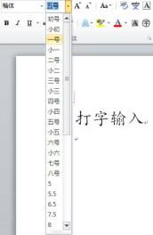 01 拖曳鼠标选中要设置字号的文字,本例选中“打字输入”四个字,在【开始】选项卡中展开【字号】下拉列表。