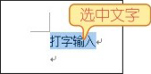 01 设置文字属性首先需要选中文字,方法是:把鼠标指针移到要选中的文字左边,按住鼠标左键不放,向右拖曳鼠标即可选择文字,例如,本例选中“打字输入”四个字,这时所有的文字就被选中了,并且呈现蓝色高亮显示。