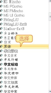 03 向下拖曳滚动条,在列表中找到【黑体】选项,单击选择。