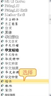 05 若在【字体】下拉列表中选择【楷体】选项,所选文字将变为楷体。