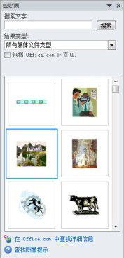 04 单击【搜索】按钮,预览窗格中显示出Word自带的剪贴画。
