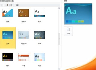 02 右侧显示【可用的模板和主题】窗格,选择【主题】选项。