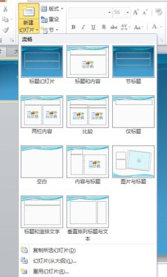 ,则弹出下拉菜单,可创建新样式的幻灯片。