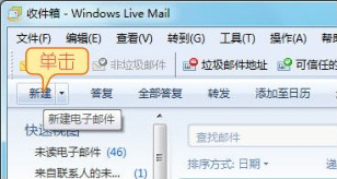 01 如果需要撰写新邮件,可以单击Windows Live Mail窗口工具栏最左侧的【新建】按钮,即可新建一封纯文本格式的邮件。