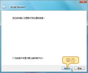 05 系统提示成功设定邮件账户,单击【完成】按钮即可将该账号添加到Windows Live Mail中。