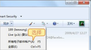 03 要接收新邮件,只需单击工具栏上的【同步】按钮,选择需要接收新邮件的邮箱账户,或者选择【同步】→【所有电子邮件账户】命令接收全部账户的新邮件。如果网络状况正常,就会连接到邮箱服务器,接收其中的新邮件,同时也会把之前撰写后还没有发出的邮件发送出去。