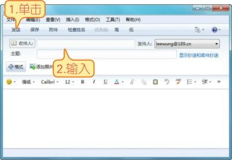 02 打开【新邮件】窗口,在【收件人】栏中填写收件人的邮件地址,在【主题】栏中填写邮件主题文字,在下方的文本框中填写好邮件正文。全部完成后,单击【发送】按钮即可立刻发送邮件(若已经连接到Internet)。
