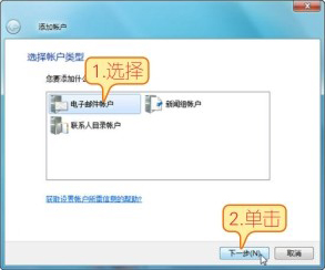 02 打开【添加账户】对话框,选择【电子邮件账户】选项,再单击【下一步】按钮。