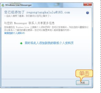 07 Windows Live Messenger会提示已经添加了对方,等待对方接受邀请后就添加成功了。单击【关闭】按钮关闭窗口。