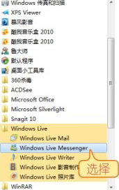 01 打开【开始】菜单,选择【所有程序】→【Windows Live】→【Windows Live Messenger】命令。