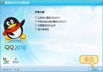 07 最后打开【安装完成】界面。在这里可以选择安装完成后将要执行的一些操作,设置完成后,单击【完成】按钮,QQ软件安装完成。