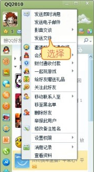 14 还可以使用QQ在线传送文件,例如文档、音乐或照片。只要好友在线,用鼠标左键单击其头像,在弹出的菜单中选择【发送文件】命令即可。